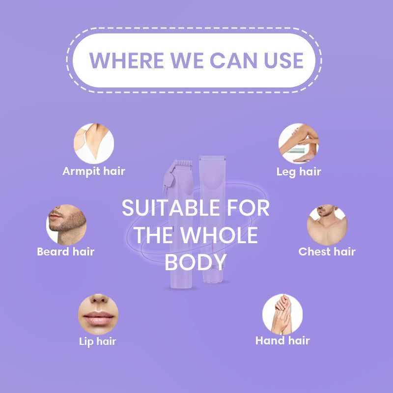 Forget juggling multiple tools. Our dual-action head trims and smooths in one glide perfect for bikini lines, underarms, and delicate curves where waxing hurts most. One tool, total confidence.