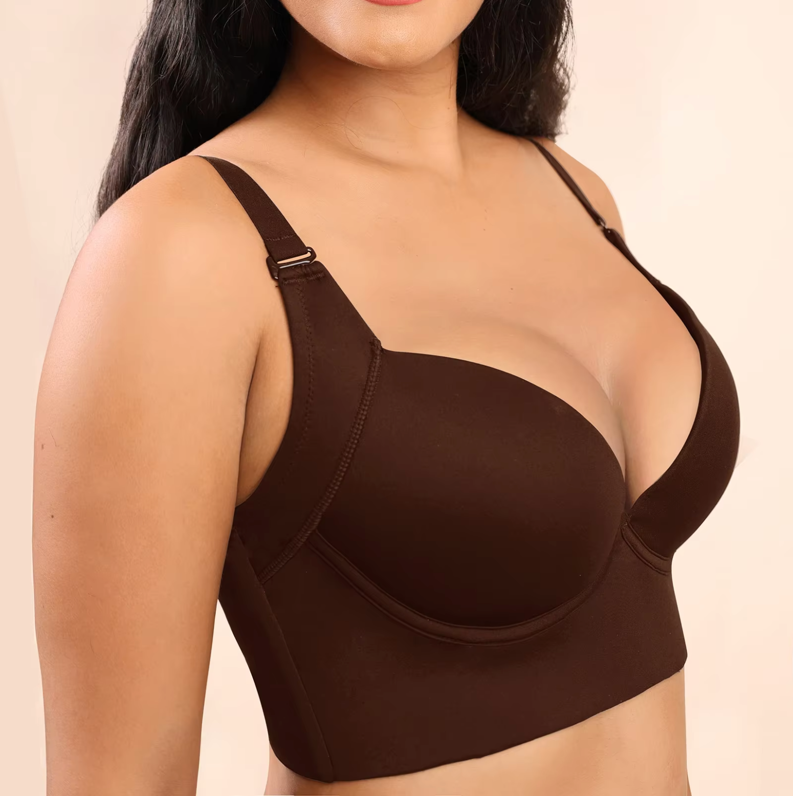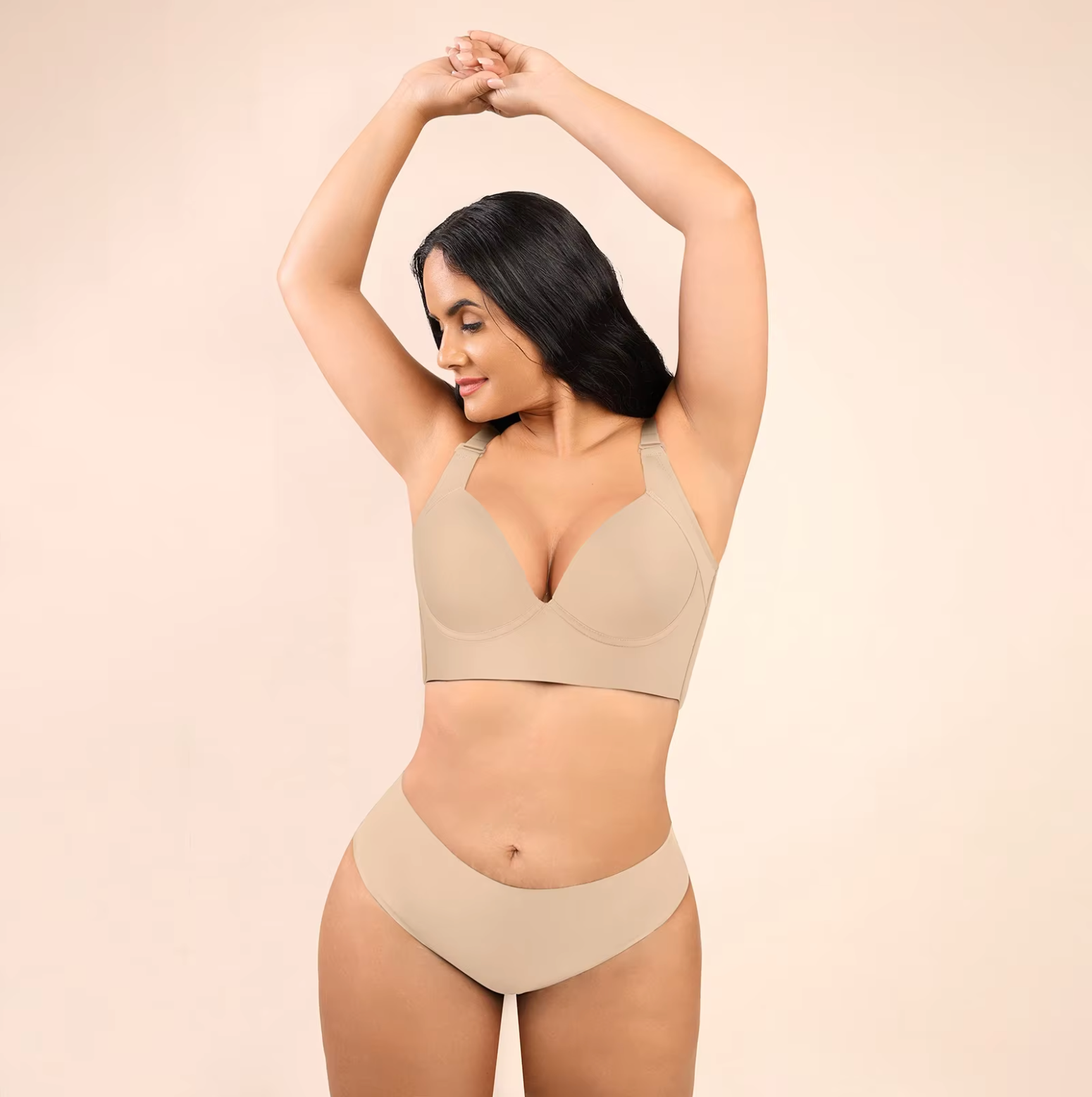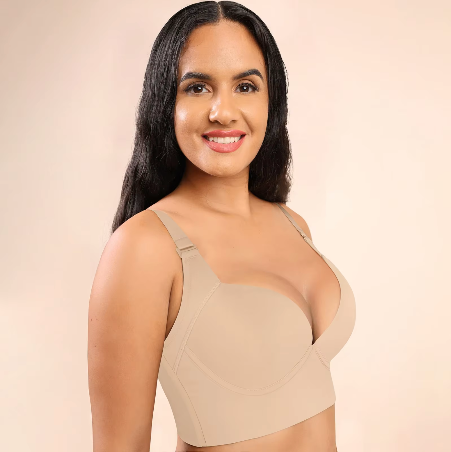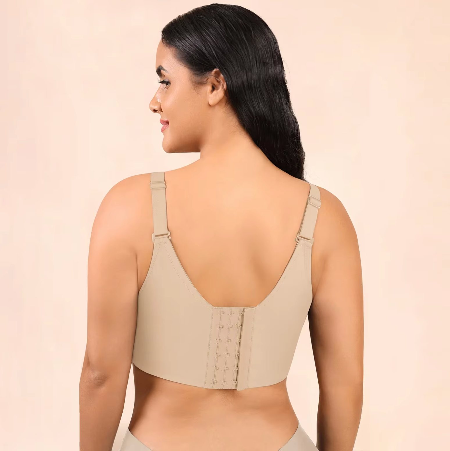 Designed with 5D seamed cups, wide side wings, and a U-shaped back panel, this bra provides the perfect blend of lift and support to combat sagging. It smooths out back bulges and corrects underarm fat, giving you a polished, streamlined look.