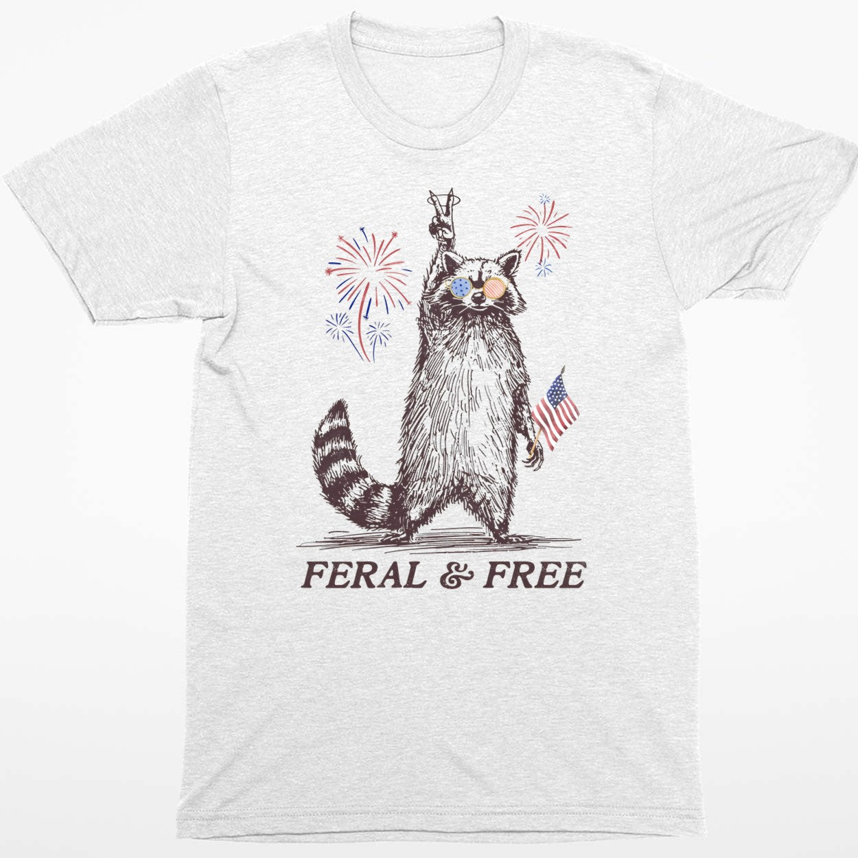 The Feral & Free Raccoon Tee is a unisex 4th of July shirt.